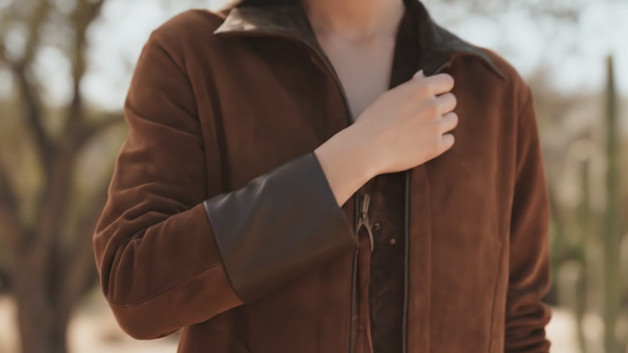 PREVENTA Chaqueta Reversible de Cuero y Gamuza Terra Café