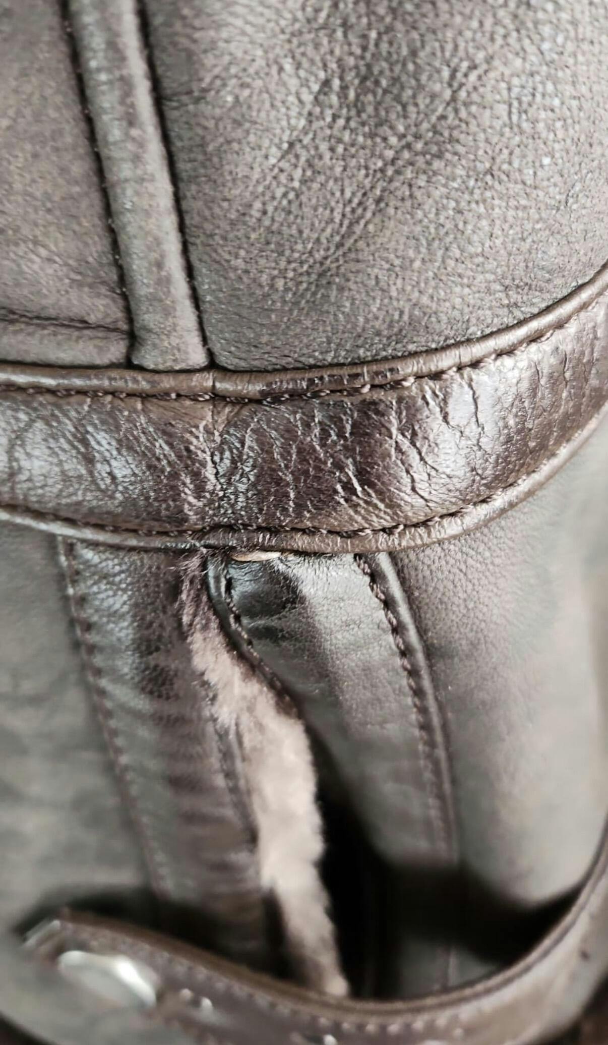 Detalles La Chaqueta Aviadora combina el clásico estilo aviador con la calidez y comodidad del chiporro interno, por fuera está confeccionada con cuero de oveja color cafe y por dentro con piel sintética color cafe tambien. Con detalles de tachas en las correas de las mangas y de la parte inferior del abrigo en ambos costados.